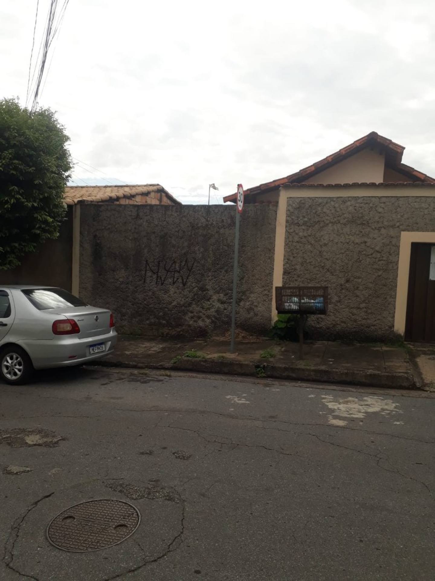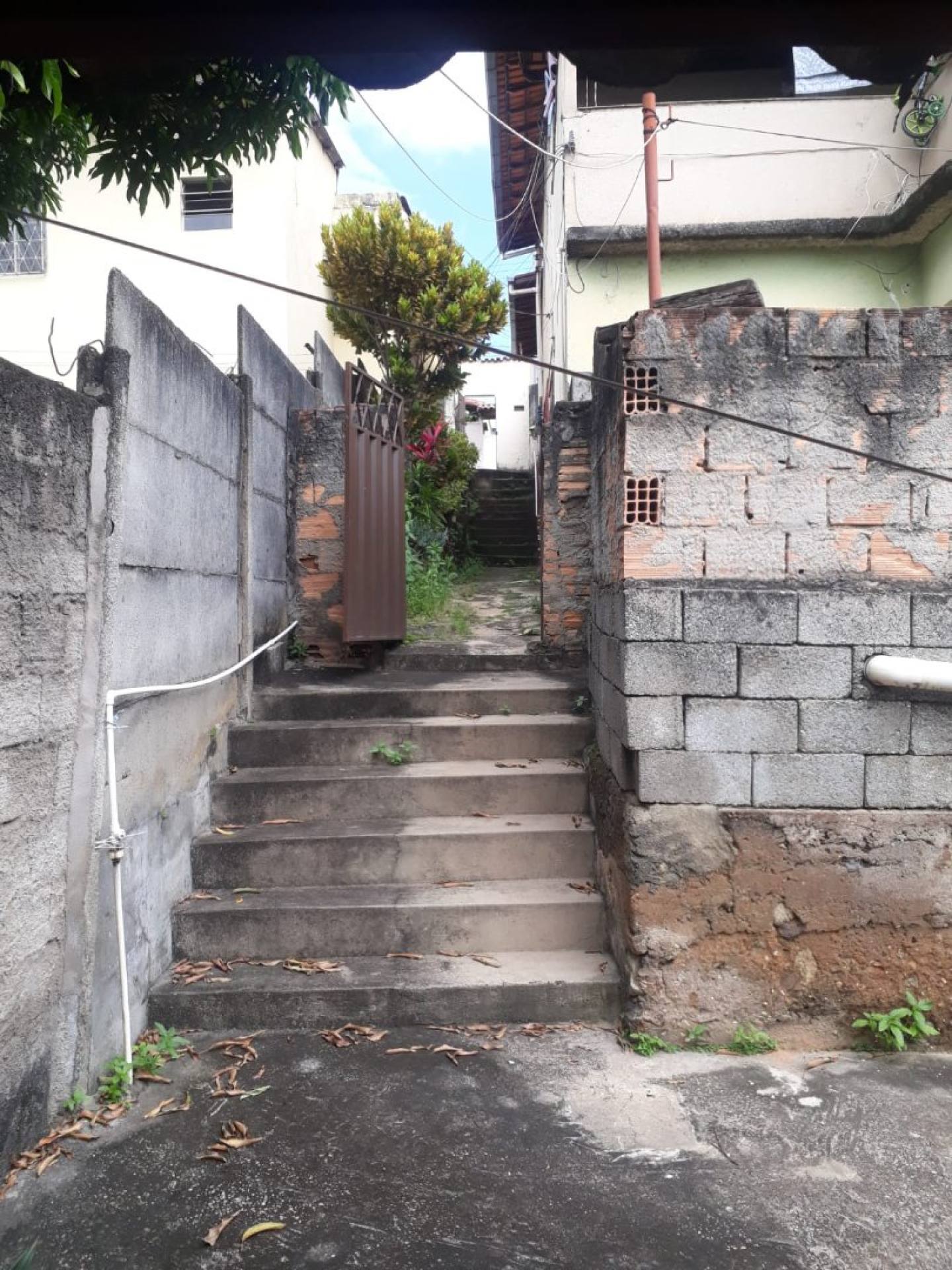 ? Topografia: terreno em leve declínio (nível da rua mais alto, descendo suavemente).